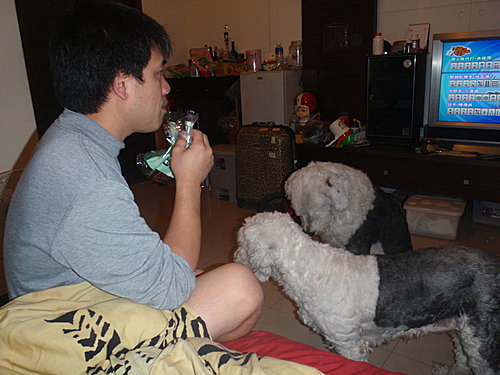 只要魚爸每次玩,每次必定會被 Toro 用鼻子給頂下來